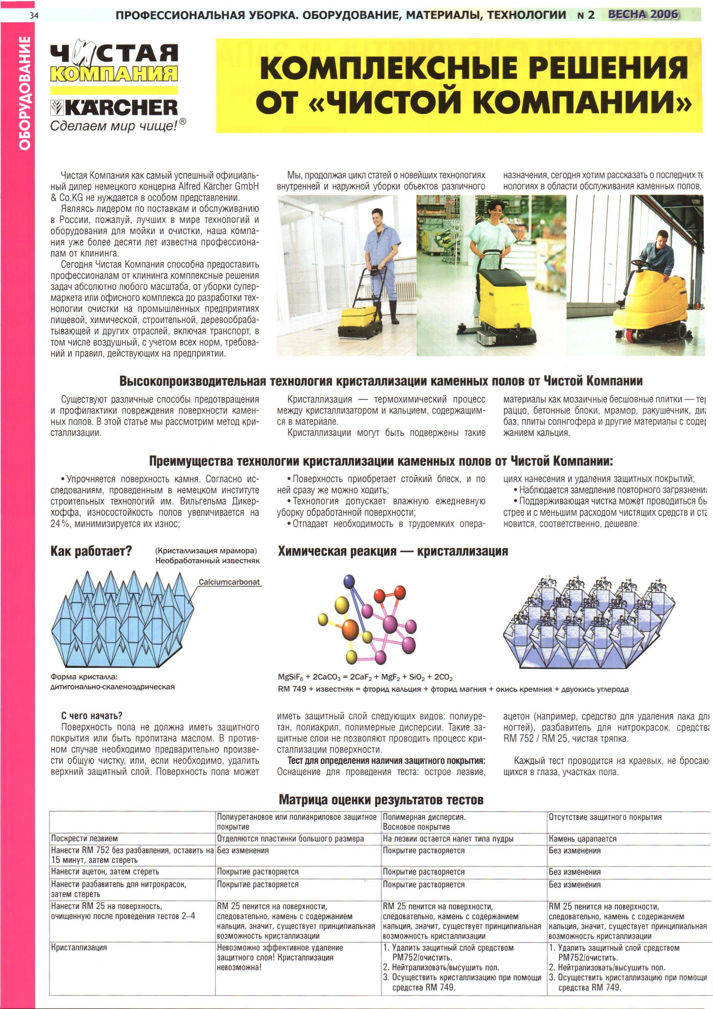 Чистая Компания, как один из успешных официальных дилеров немецкого концерна Alfred Karcher GmbH & CO.KG, разместила статью по кристаллизации мраморных полов с использованием оборудования Karcher.