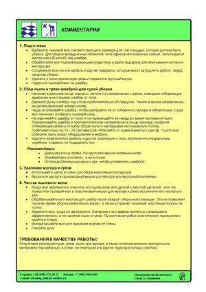 Учебно-операционная карта по сухой уборке пылевыми мопами.